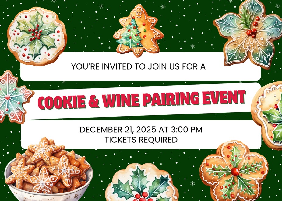 Join us for a cozy afternoon of Christmas cookie and wine pairings, where each delicious bite is matched with the perfect pour. 🍷❤️