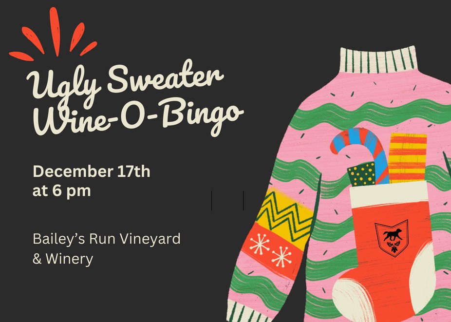 It’s time to dust off your most beautifully hideous holiday sweater and join us for a night of festive fun, wine, and Bingo! 🍷✨